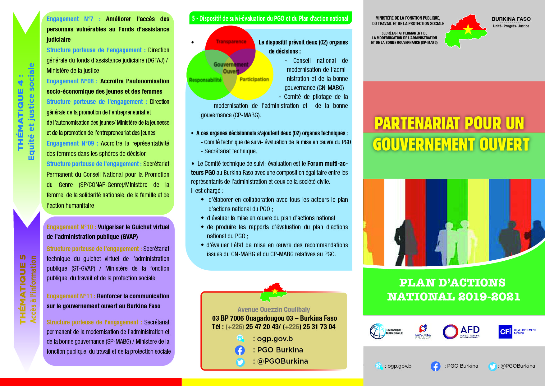 Cette chemise présente le processus d’élaboration, l’adhésion du Burkina au PGO et les différents engagements du PAN.